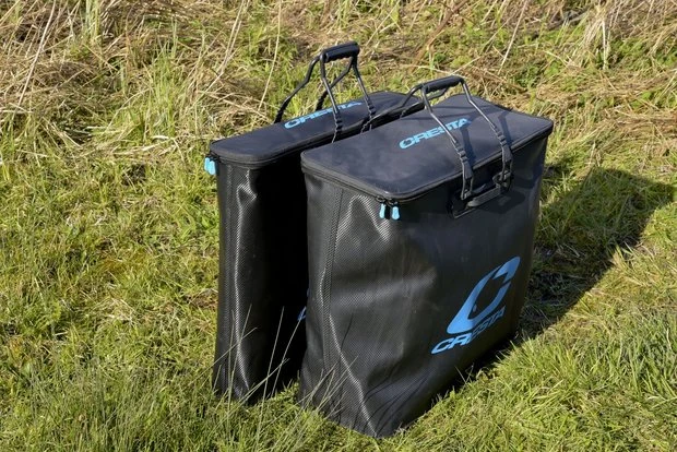De waterdichte EVA Keepnet Bag Compact met stijlvolle carbon look biedt plaats aan minimaal een rond of vierkant bewaarnet en enkele schepnetten.