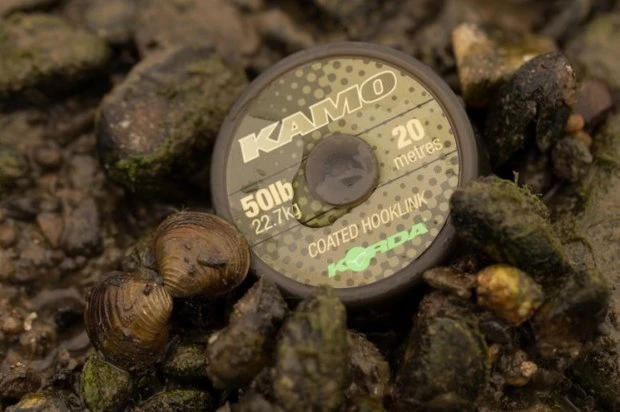 Door bij de Kamo een gecoat onderlijnmateriaal te voorzien van een gecamoufleerd patroon dat elke paar centimeters van kleur veranderd valt het goed weg op elk type bodem.