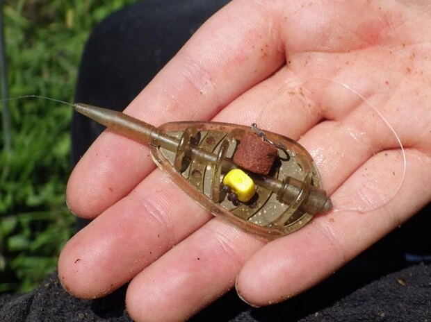 De Mega Method Feeder van ESP is een ideaal hulpmiddel om een compact hoopje grondvoer bij je haakaas aan te bieden.