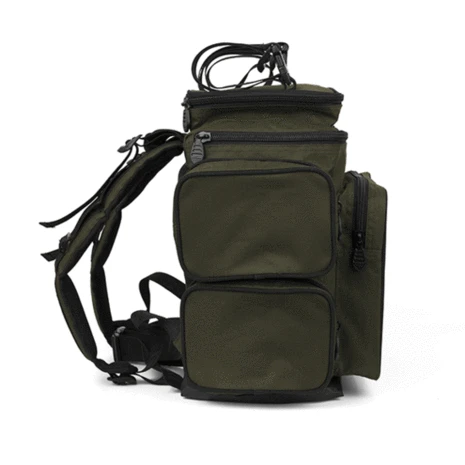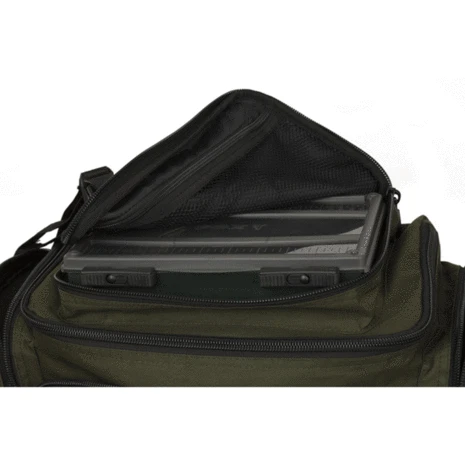 De tas beschikt over diverse vakken voor tackleboxen en accessoires, heeft speciale lussen voor het meenemen van banksticks en aan de bandjes kun je een onthaakmat of licht stoeltje bevestigen.