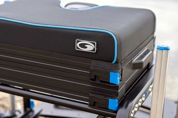 Een zitkussenblok voor comfort met hengelondersteuning maakt deze kwaliteitsbox gewedlig af.