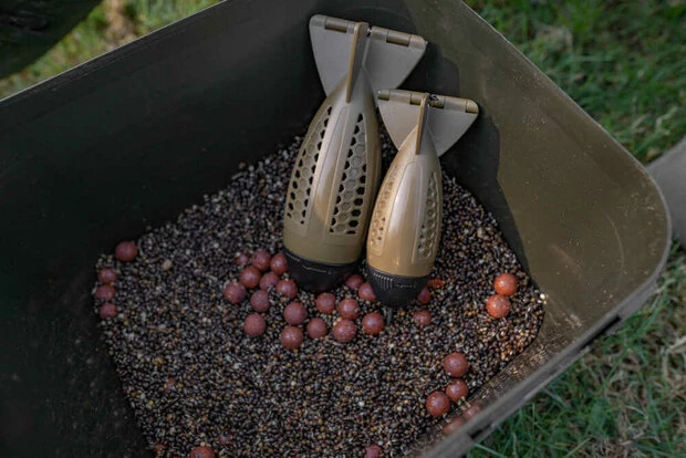 Het inladen van aas is eenvoudig en door de vorm van de hoofdholtekun je er gemakkleijk veel aas in kwijt.