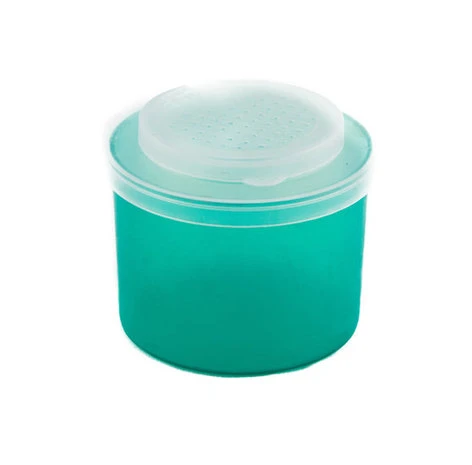 Deze madendoos is vervaardigd uit stevig plastic, met geperforeerd en goed sluitend deksel.