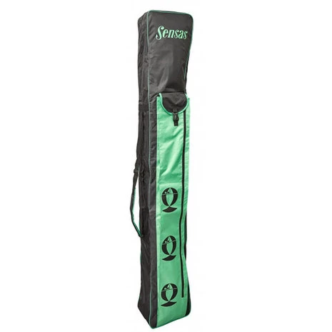 Met een centraal vak. Elastiek banden binnenin om de hengelkokers tijdens het transport op de plek te houden.