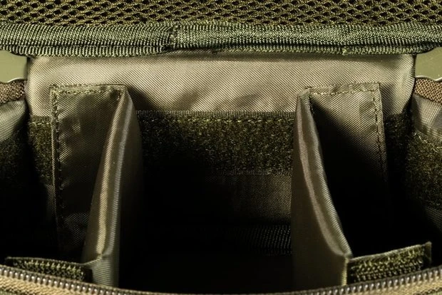 De SB PRO LEAD BAG is voorzien van 2 uitneembare tussenschotten met klittenband en een intern meshvak voor het netjes opbergen van clips, wartels, leadcore, etc.