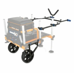 Geleverd met 2 puncture wielen die dus niet zullen gaan lekken. In hoogte verstelbaar support voor de hengels of foudraal.